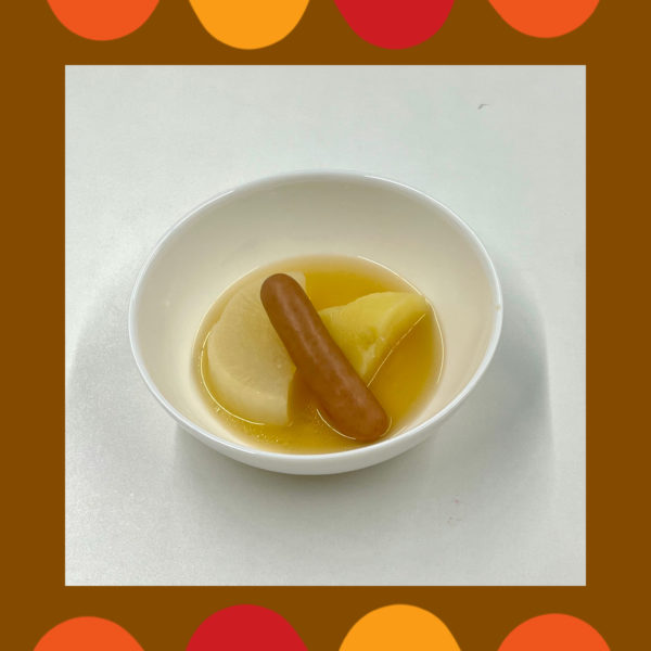 大根・じゃが芋・ウィンナーを・・・やさしい味のスープでコトコト煮込みました💗